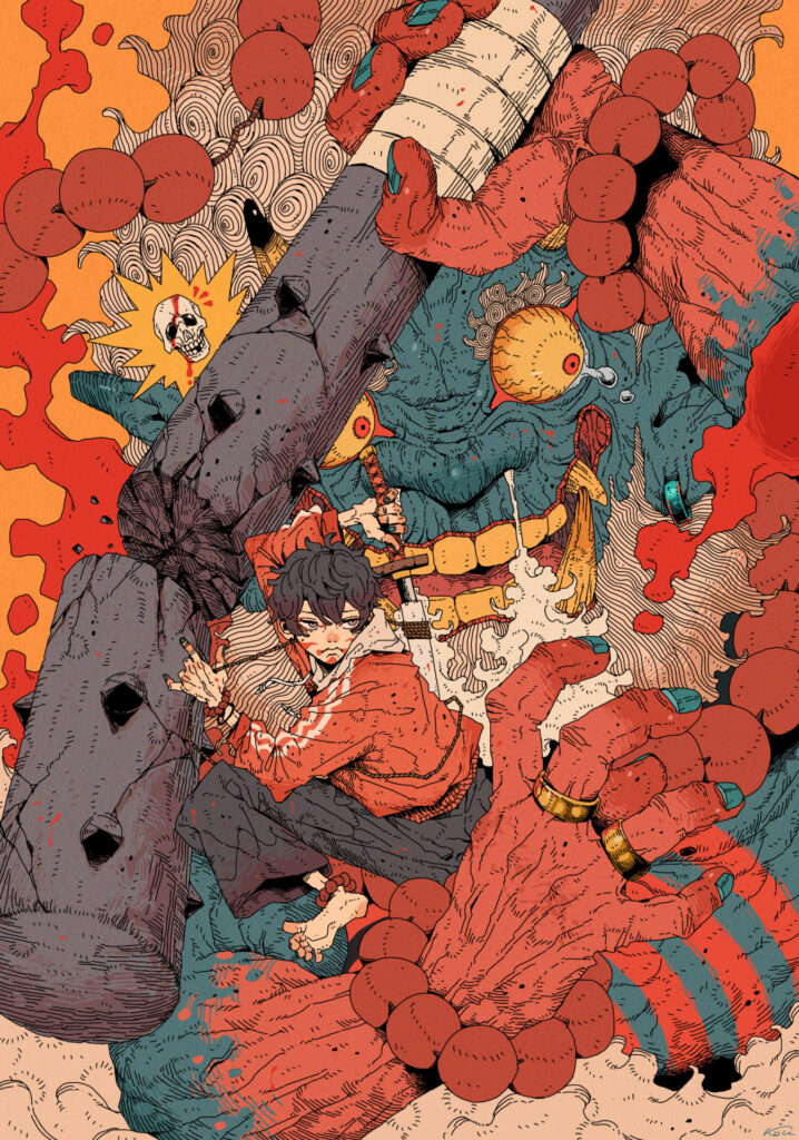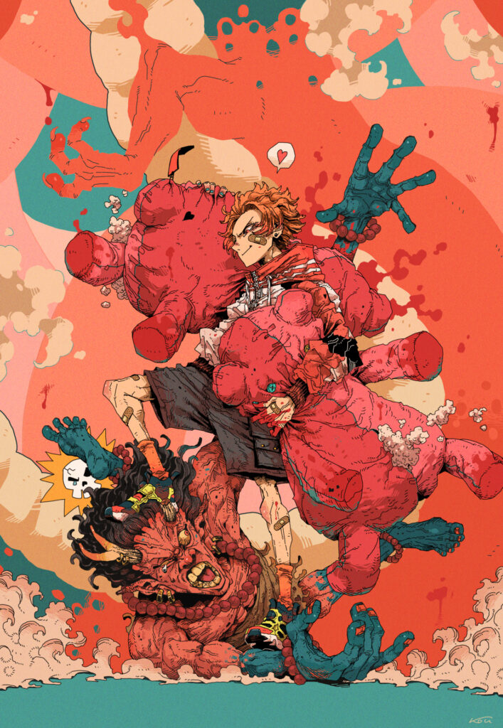 その前は鳥山明さんが好きで真似していたり、ワンピースの扉絵を参考にして描いていました。